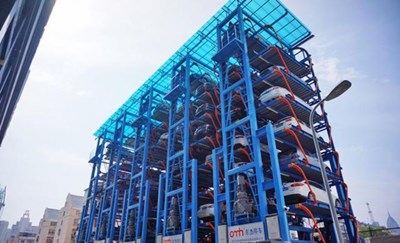 Xuefu smart parking building is located in the northwest corner of the intersection of WUcheng Road and Xuefu Street, the project construction area of 17908.41 square meters,?? a total height of 38.75 meters, divided into two north and south warehouse, 13 floors of the South Library parking floor, 11 floors of the North Library parking floor, a total of 1204 parking spaces, including 918 mechanical parking spaces, 118 outdoor parking spaces, 168 parking spaces on the ground floor of the commercial floor. The building is set up with 11 independent imports and exits, enabling independent continuous access to vehicles.