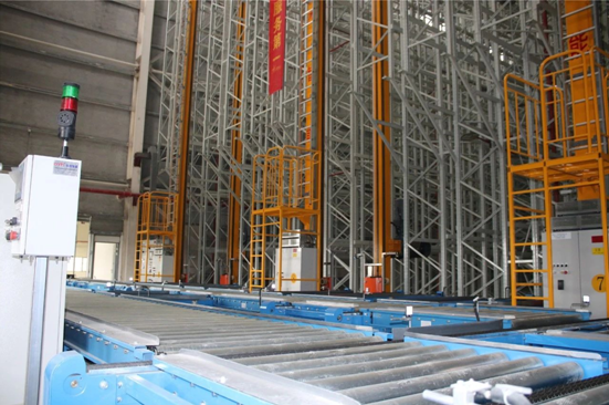 2. Project introduction: The System is divided into several sub-systems, respectively for finished product transportation, stacking, storage, and stock removal. In specific, it consists of more than 50,000 elevated storage positions, 17 double-deep stackers, 4 single-deep stackers, 10 sets of robotic stacking systems, a pallet conveying system, an electrical control system, a loop transportation system and a warehouse management system.