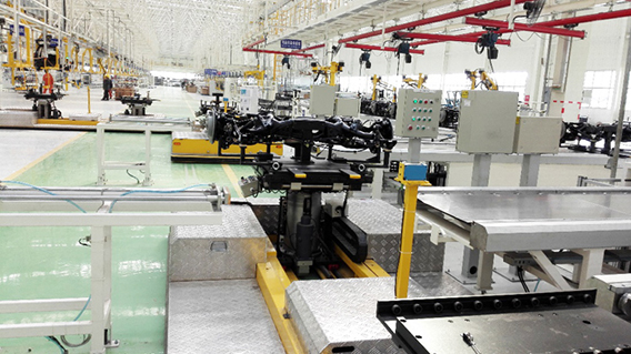 多舉升可根據(jù)車身軸距自動調(diào)整舉升機構(gòu)間距,滿足多種車型混線生產(chǎn)